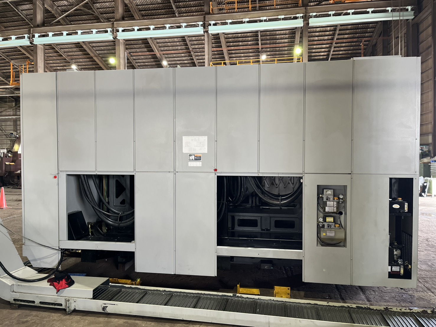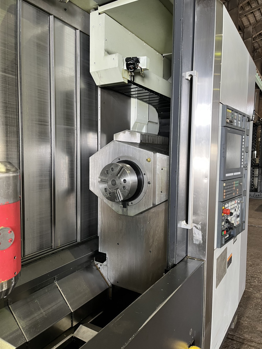 MSX-701Ⅲ(FANUC31iA5)MAPPSⅢ 第1主軸:12インチ(4000rpm), 第2主軸:10インチ(4000rpm) 回転工具:12000rpm, ATC-100, B軸任意割り出し BT40, チップコン, タッチセンサー, センタースルー 重量:24t |